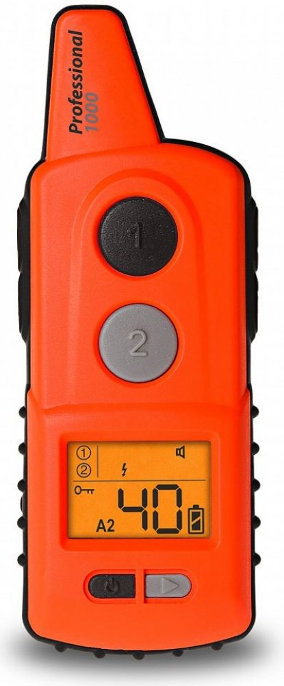 Vysílač umožňuje individuální nastavení čtyř funkčních tlačítek. Na každé tlačítko je možné navolit jednu z funkcí - akustický signál, stimulační impuls, vibraci a světlo, nebo lze nastvait jednu funkci vícekrát, jako například stimulační impuls, který může sloužit také jako booster. Výcvikový obojek d-control professional 1000 je dostupný v oranžové a černé barvě. Všeobecné vlastnosti: dosah až 1...
