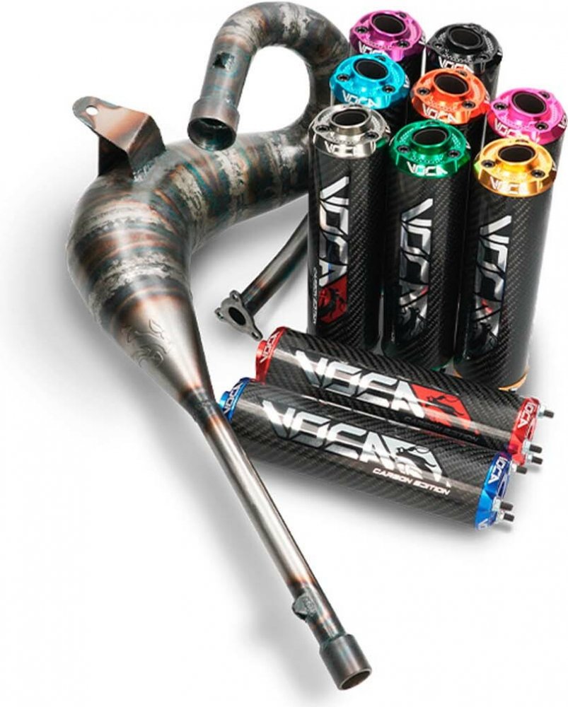 Extrémně výkonná výfuková soustava Voca Racing v MX stylu (nahoře vedená soustava)