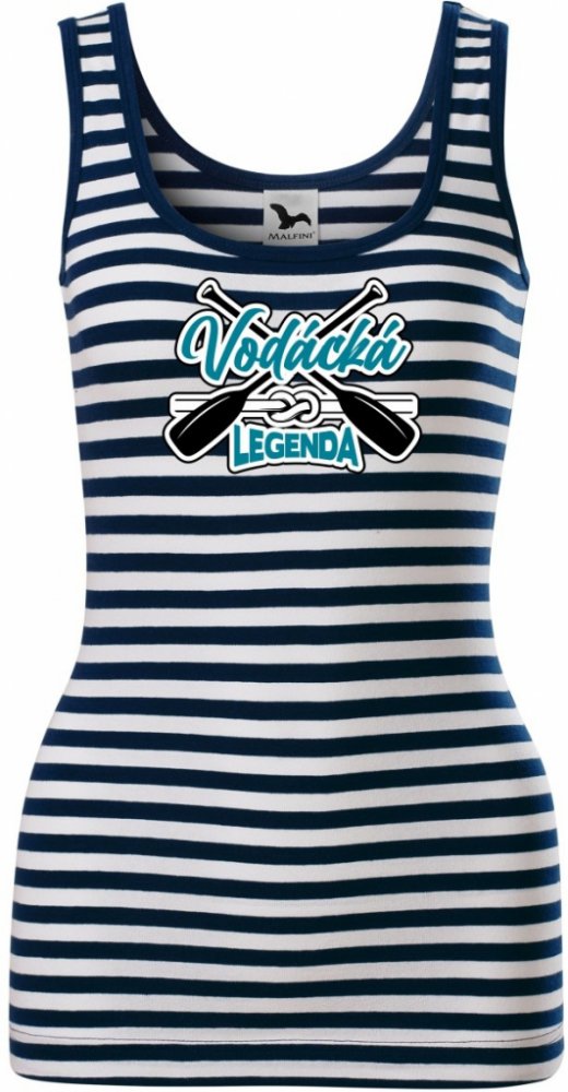 Dámské vodácké pruhované tričko SAILOR s potiskem "Vodácká LEGENDA" na přední straně trička. Skvělé pro partu na vodu, která si to hodlá pořádně na vodě užít.