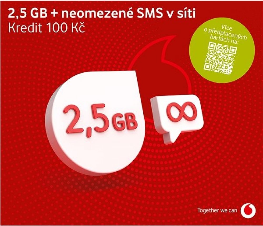 SIM karta Vodafone Edice Datuj nabízí skvělou příležitost pro všechny, kteří hledají výhodný datový balíček s flexibilními možnostmi. Obsahuje 3,5 GB dat a neomezené SMS v síti Vodafonu na první měsíc, vše je zahrnuto v ceně karty. Ihned po aktivaci můžete začít surfovat na internetu a posílat SMS bez omezení, aniž byste museli řešit další náklady. Po uplynutí prvního měsíce máte možnost na SIM kartě Vodafon aktivovat další výhodné balíčky na volání, SMS a data podle svých potřeb a preferencí. Vodafone nabízí širokou škálu balíčků, které lze snadno přizpůsobit vašemu stylu používání. Více informací o dostupných balíčcích a podrobný návod, jak je aktivovat, naleznete zde. Klíčové vlastnosti datové SIM karty Vodafon - 3,5 GB datDatová SIM karta Vodafon přináší na první měsíc balíček o velikosti 3,5 GB a neomezené SMS v síti VodafonNavíc získáte kredit 50 Kč s platností 45 dníNásledně se balíček automaticky obnoví za 239 Kč měsíčněZa každé dobití vám Vodafon přidá odměnu ve výši 20 %...