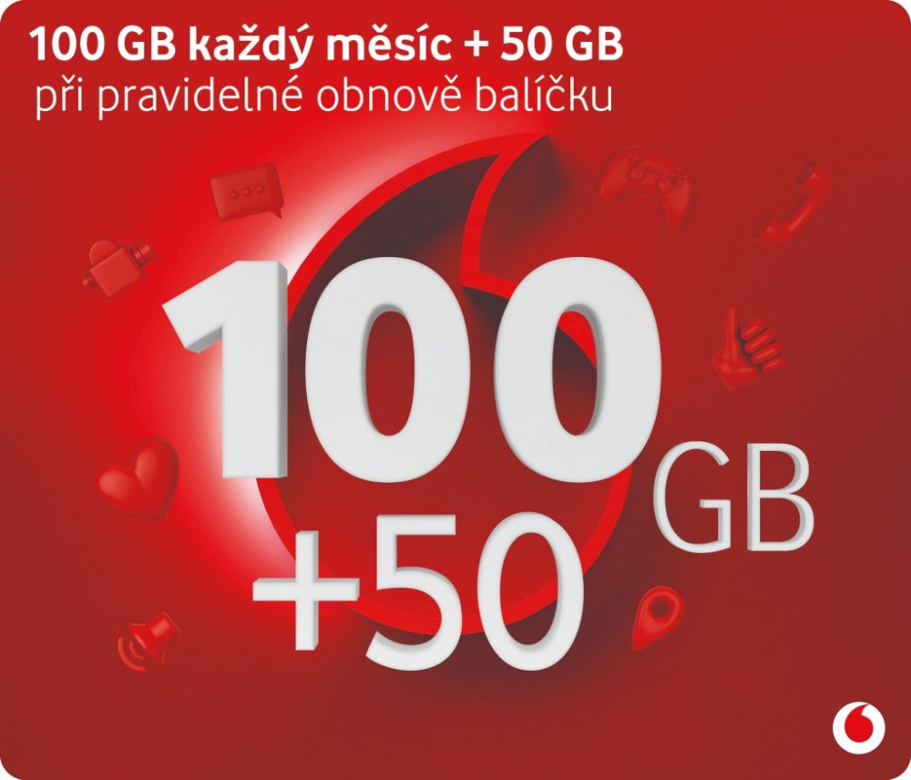 Vodafone GIGA karta nabízí balíček 100 GB dat na 30 dní za cenu 449 Kč. Balíček se automaticky obnoví při dostatečném kreditu s prvním připojením k internetu. Pokud budete balíček pravidelně obnovovat nejpozději do 3 dnů po jeho vypršení, získáte při další obnově navýšený objem 150 GB dat za stejnou cenu 449 Kč. Pokud balíček nebude aktivován déle než 3 dny, při další aktivaci obdržíte základní ob...