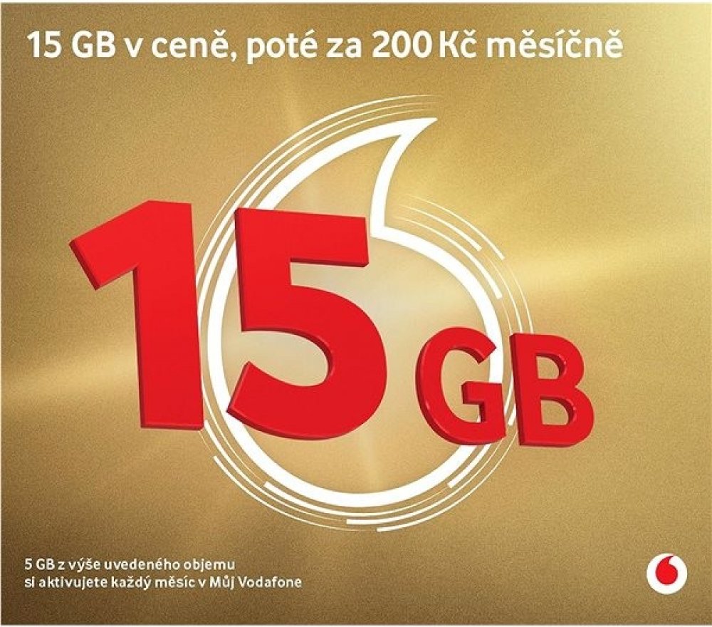 SIM karta Vodafone Zlatá karta nabízí skvělou příležitost pro všechny, kteří hledají výhodný datový balíček s flexibilními možnostmi. Obsahuje 15 GB dat a neomezené SMS v síti Vodafonu na první měsíc a 50 % slevu na dalších 5 měsíců, vše je zahrnuto v ceně karty. Ihned po aktivaci můžete začít surfovat na internetu a posílat SMS bez omezení, aniž byste museli řešit další náklady. Po uplynutí prvního měsíce máte možnost na SIM kartě Vodafone aktivovat další výhodné balíčky na volání, SMS a data podle svých potřeb a preferencí. Vodafone nabízí širokou škálu balíčků, které lze snadno přizpůsobit vašemu stylu používání. Více informací o dostupných balíčcích a podrobný návod, jak je aktivovat, naleznete zde. Klíčové vlastnosti datové SIM karty Vodafone - Zlatá kartaDatová SIM karta Vodafone přináší na první měsíc balíček o velikosti 15 GB a neomezené SMS v síti Vodafone (10 GB + 5 GB si vyzvednete v aplikaci Můj Vodafone)Navíc získáte 50 % slevu na dalších 5 měsícůSoučástí je extra...