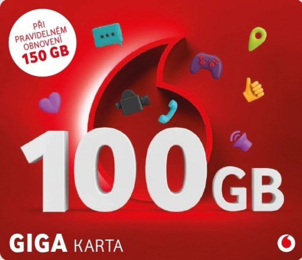 Vodafone SIM Předplacená karta GIGA 100GB + 50Kč kredit