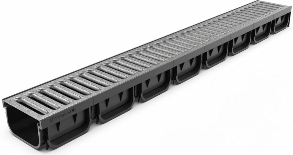 Odvodňovací plastový žlab s pozinkovanou mříží VODALAND EASY A15 1000 x 125 x 70 mm