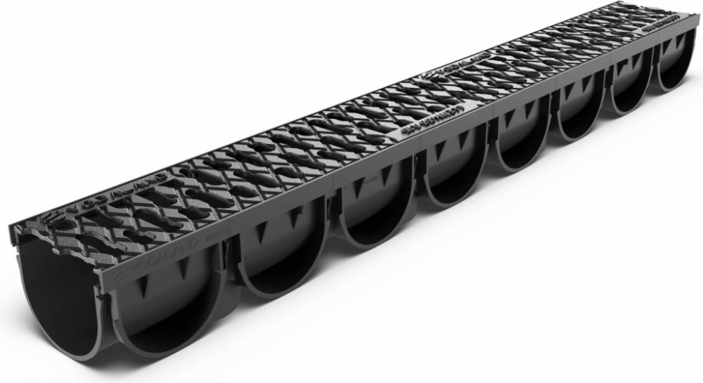Odvodňovací plastový žlab s litinovou mříží VODALAND EASY C250 1000 x 125 x 100 mm