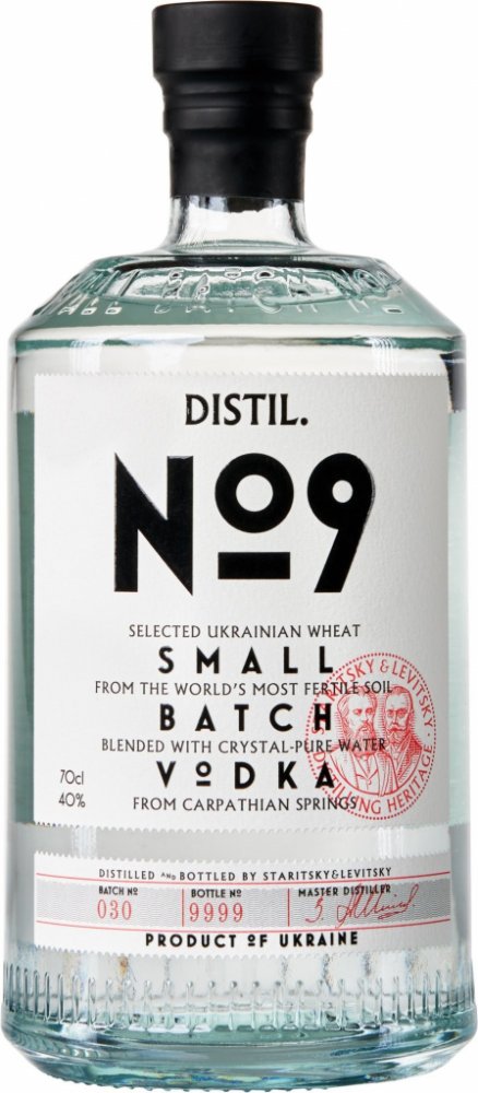 Distil.№9 je výsledkem mnoha pokusů vytvořit produkt s rozpoznatelně jemnými organoleptickými vlastnostmi, používající pouze základní složky. Ale teprve devátý pokus předčil veškerá očekávání a stal se tím nejlepším ze všech. Není obtížné vymyslet název této vodky. Distil.№9 - výsledek trpělivosti, vytrvalosti a štěstí. Zvláštnosti výroby spočívají v použití pouze dvou pečlivě vybraných složek: vody a lihu, a v regulované době zrání - 28-35 dní.