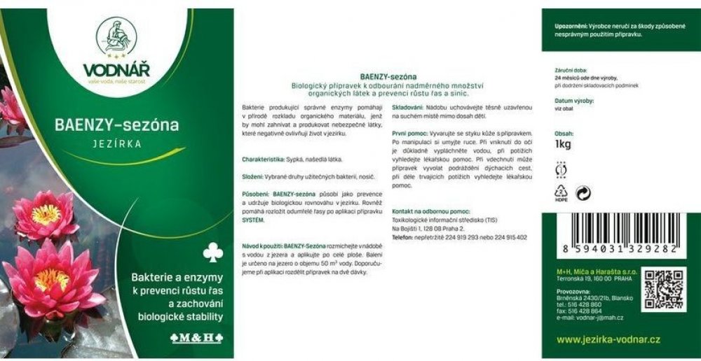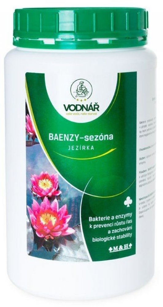 Baenzy sezóna působí jako prevence a udržuje zdravou biologickou rovnováhu v jezírku, rovněž pomáhá rozložit odumřelé řasy po aplikaci algicidního přípravku Na řasy-systém.