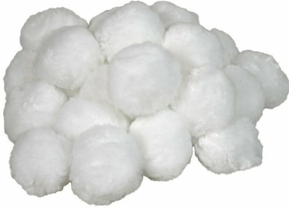 Bílé polyethylenové kuličky o velikosti 50 mm.