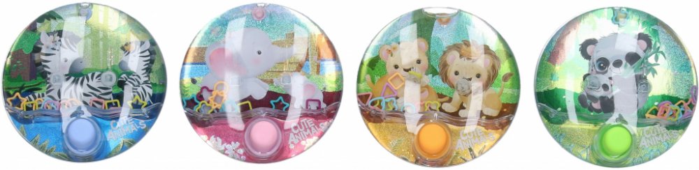 Vodní hra zvířátka. Rozměry 10x10x3 cm. 12 ks display box. 4 varianty - lev, žirafa, panda, slon.