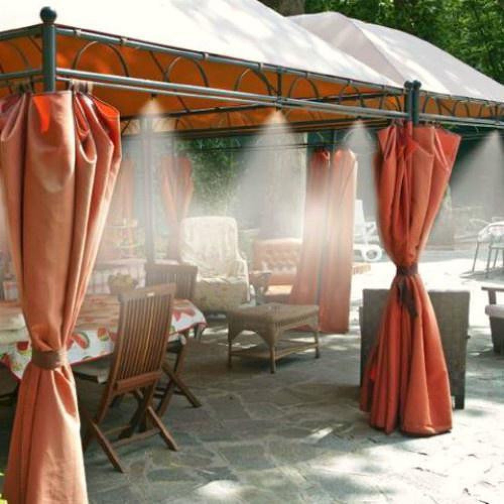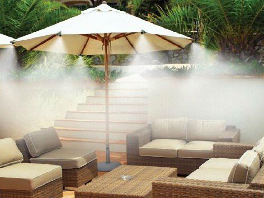 Jak osvěžit vzduch v parných dnech? Pravdou je, že pod pergolou i pod slunečníkem je v parných letních dnech přehřátý a suchý vzduch. Zvýšením vzdušné vlhkosti se pocitová teplota může snížit až o 10 stupňů. Nemusíme přitom po sobě stříkat proudem vody z hadice a plýtvat vodou, řešením je použití tzv. vodní mlhy, vynikajícího osvěžení v teplých letních dnech.