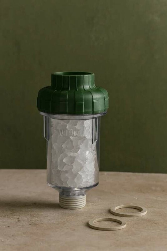 Zařízení Vital pračkový chrání pračku, topné těleso i myčku před vodním kamenem. Šetří prací prostředky i elektrickou energii. Toto zařízení nedovolí, aby se vodní kámen usazoval, staré úsady pozvolna rozpouští. Umístění zařízení mezi pračkový ventil a hadici. Vstup a výstup ze zařízení je 3/4 ".