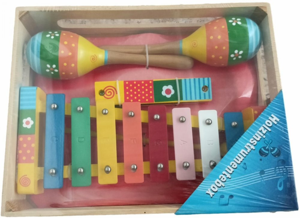 Dětský hudební set VOG dřevěné hudební nástroje 4 ks je vhodným prvním hudebním setem pro děti. Balení obsahuje různobarevný xylofon, který vydává tóny úderem paličky do destiček. Foukací harmoniku s motivy, která rozvíjí hudební sluch i dechovou koordinaci. Rumbakoule při pohybu vydávají jemný rytmický zvuk, rozvíjí cit pro rytmus a koordinaci pohybu. Tato hudební sada je vyrobena ze dřeva a je vhodná pro děti od 3 let. Klíčové vlastnosti dětského hudebního setu VOG dřevěné hudební nástroje 4 ksDětský hudební set rozvíjí hudební sluch, koordinaci pohybu a cit pro rytmusHudební nástroje jsou vyrobeny ze dřevaBarevné provedení děti zaujmeSet je vhodný pro děti od 3 letObsah balení:1× xylofon1× harmonika2× rumbakoule