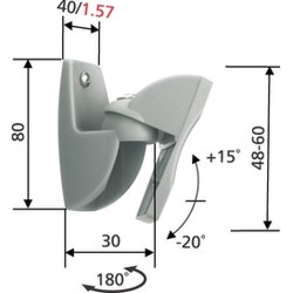 Specifikace výrobku nosnost 5 kg náklon +15° -20° natáčení 180° materiál plast barva stříbrná
