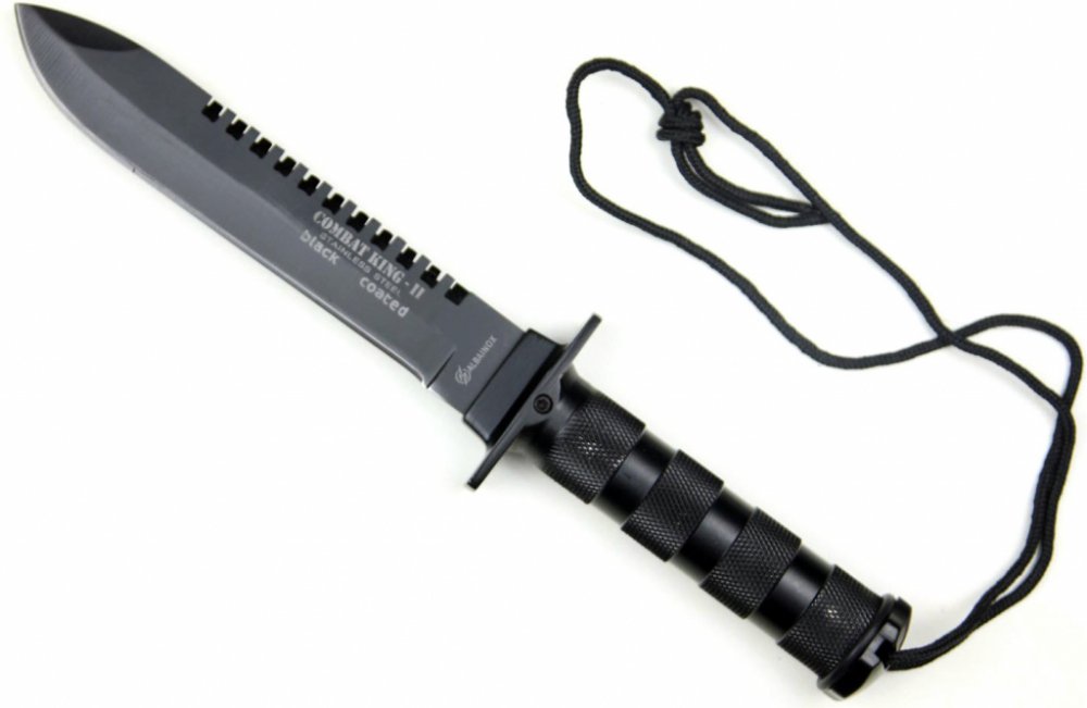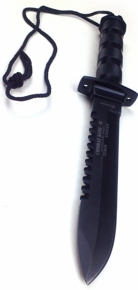 Čepel nože "RAMBO - COMBAT KING" je pevně zapuštěna do rukojeti a zajištěna imbusovým spojem, takže vydrží osekávání větví apod. Pro větší bezpečnost práce s nožem je rukojeť opatřena záštitou. Rukojeť nože "RAMBO - COMBAT KING" je celá z hliníku a má protiskluzovou úpravu. Velice pohodlně se drží a je tak možné s nožem pracovat i delší dobu.