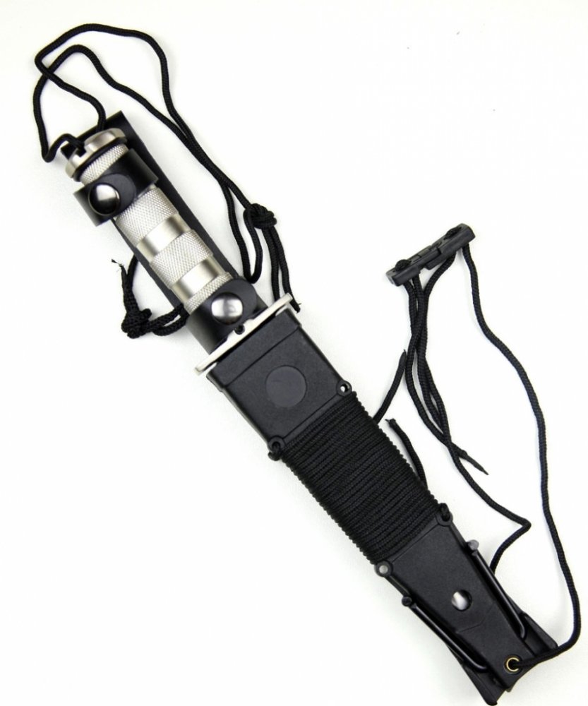 To vše je ukryto ve voděodolném pouzdře! Samozřejmě ve fantazii se meze nekladou a do rukojeti můžete umístit věci dle Vašeho uvážení - např. papírové peníze, sirky, apod. Prostor do rukojeti je zespoda důkladně uzavřen vodotěsným šroubovacím uzávěrem s funkčním kompasem a více než 0,5 m tkaniny!