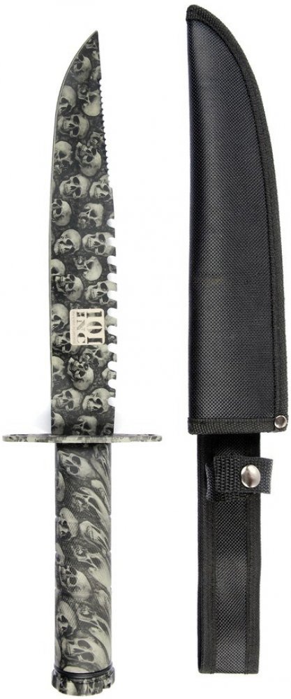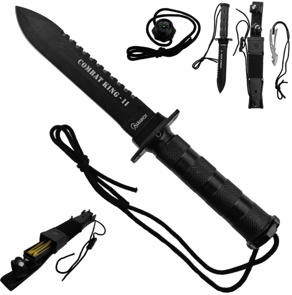 Vojenský celokovový pevný nůž pro přežití s velice bohatou výbavou a zpracováním, který Vám bude multifunkčním pomocníkem do každé situace! Na horní straně čepele naleznete velmi ostrou dvoubřitou pilku. S touto pilkou uříznete bez potíží snadno a rychle i silné větve a desky!