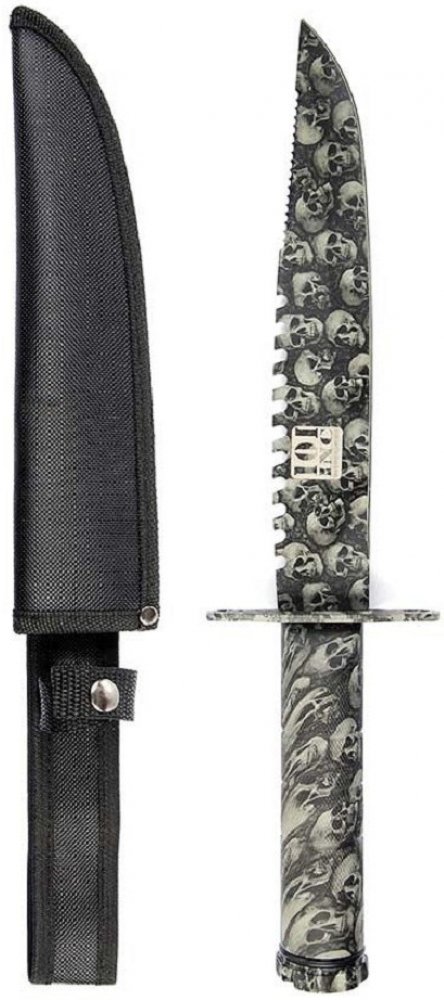 Další nadstandardní a výjimečná výbava je skrytá v samotné pochvě nože! Zde se ukrývá plochý krátký nůž z jednoho kusu nerezové oceli! Ten má multifunkční využití - můžete jej využít jako vrhací nůž, přivázat k větvi a vyrobit si harpunu pro lov ryb apod. Dále se v pevném pouzdře nože skrývá guma a kůže pro sestrojení plnohodnotného praku! Ten můžete sestrojit připevněním gumy na konec pochvy, kde je vytahovací kovová vidlice. Pochva nože je na konci zúžená, takže se velice dobře drží při střelbě a míření.
