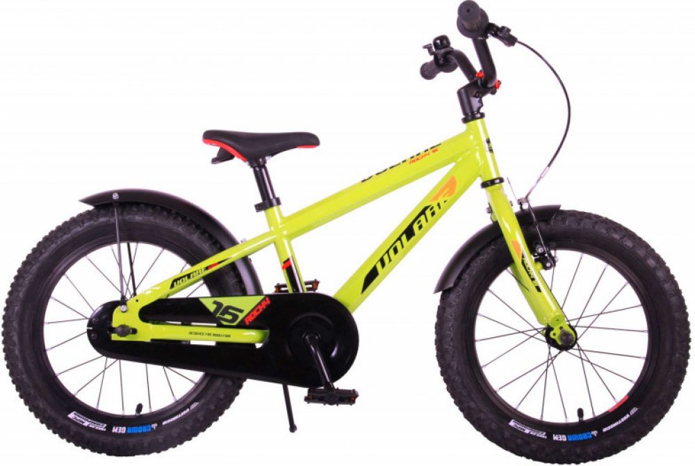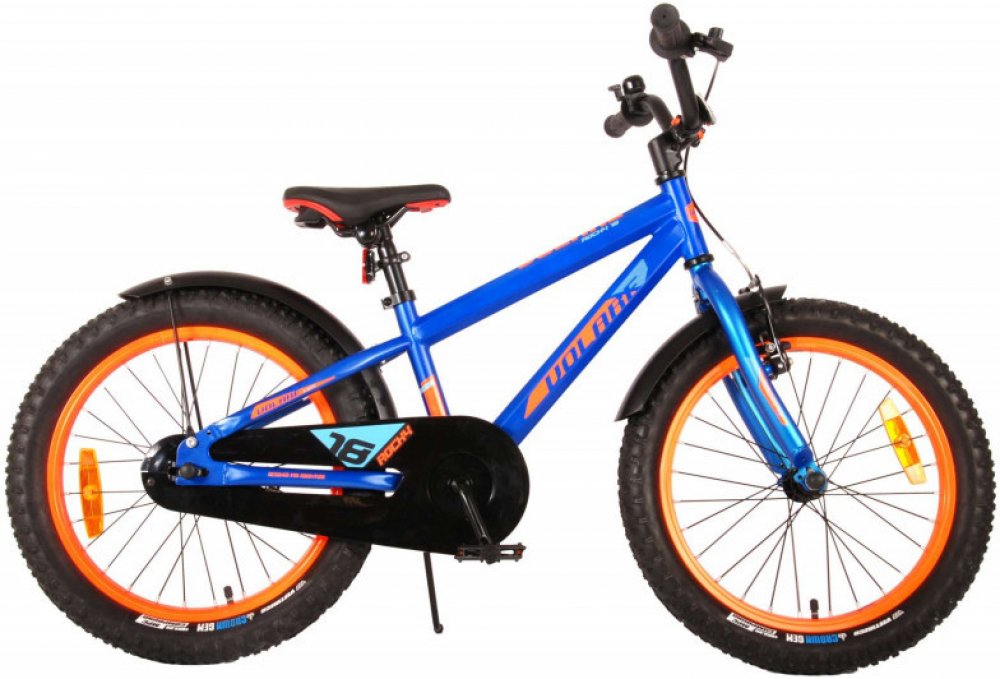 Exkluzivní 18palcový model Rocky od známé evropské značky Volare nadchne svým sportovním provedením všechny malé závodníky, kteří se nebojí pořádně si zařádit. Volare Rocky 18" jezdcům nabízí celou řadu předností jako například bytelný ocelový rám, pevná, výškově nastavitelná řídítka nebo kvalitní přední hliníkovou brzdu typu V-Brake. Široká nafukovací kola s ocelovými ráfky si hravě poradí s jízdou takřka v jakémkoliv terénu. Kolo je vybavené uzavřeným krytem řetězu, který chrání nohu dítěte před kontaktem se řetězem a zároveň chrání i samotný řetěz před poškozením. Bezpečnou jízdu v šeru zajistí reflexivní prvky - odrazky v ocelovém výpletu kol, na řídítkách a na sedáku. Madla řídítek jsou vyrobená z tzv. kratonu - elastického, protiskluzového materiálu na bázi gumy. Madla jsou zajištěná bezpečnostními koncovkami. Ve výbavě nechybí ani speciálně tvarovené blatníky, zvonek na řídítkách a stojan pro snadné uložení kola bez nutnosti pokládat jej na zem. Doporučený věk je 4-7 let / doporučená velikost oblečení 104-116, což odpovídá výšce postavy přibližně 110-125 cm. Kolo je opatřené veškerými potřebnými bezpečnostními certifikáty. Volare Rocky 18" není vybavené balančními kolečkami.