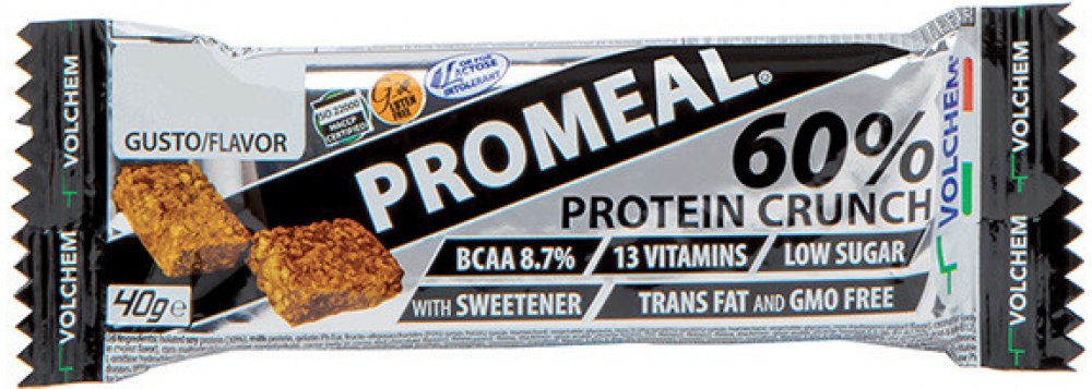 Pokud hledáte proteinovou tyčinku, která zároveň neobsahuje velké množství cukrů a tuků, jak tomu často bývá u "proteinových" tyčinek, je Promeal Protein Crunch 60 % správnou volbou pro Vás. Každá tyčinka obsahuje 24 g bílkovin, pouze 5 g sacharidů a 3,4 g tuků. Z obsažených sacharidů připadá pouze 0,4 gramu na rychlé cukry. Promeal Protein Crunch Bar 60 % navíc neobsahuje lepek a obsahuje jen ve...