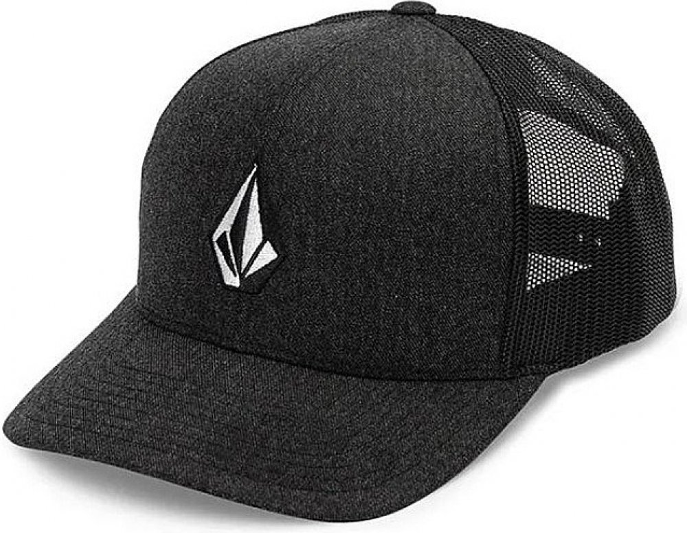 Pánská kšiltovka Volcom Full Stone HX s ohnutým, prošívaným kšiltem v šedé Charcoal barvě. Vpředu má výšivku loga Volcom, po celém obvodu flex-fit gumu a po celé ploše větrací otvory.