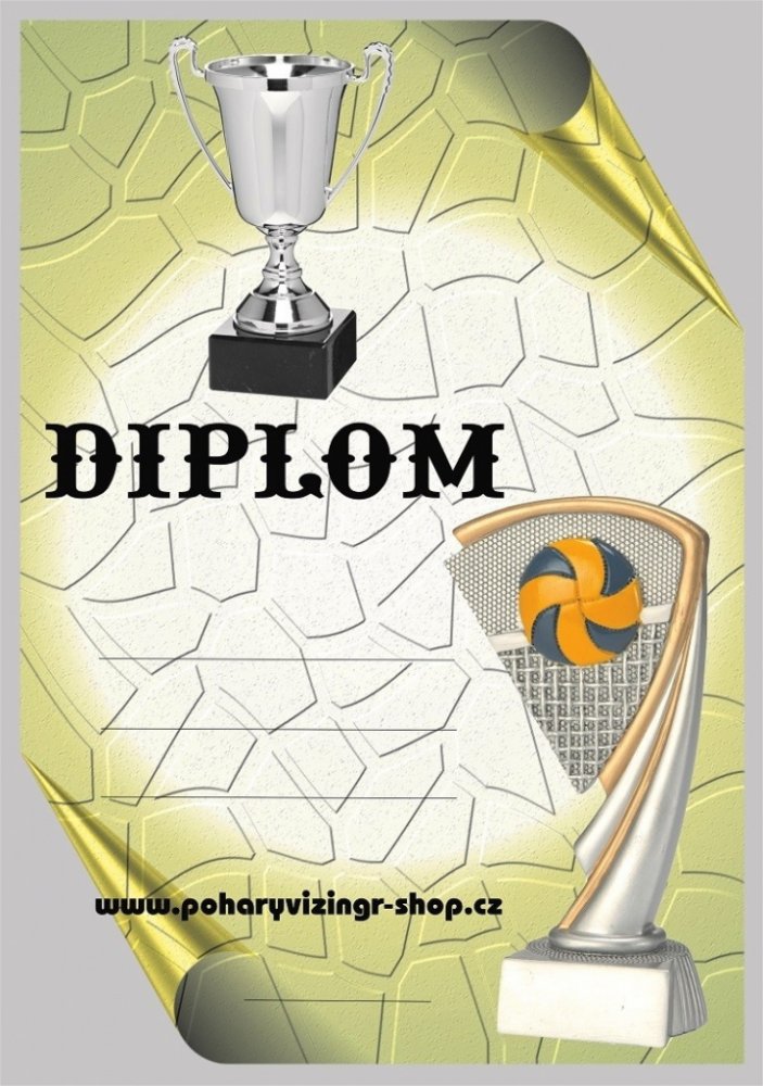 Volej.č.32. Diplom formátu A4 (250 g). Objednáváte NEVYPLNĚNÉ (BEZ TEXTU) diplomy a chcete si je vyplňovat vlastní tiskárnou - napište do textu "BEZ LINEK". Objednáváte diplomy VYPLNĚNÉ - krátké a stejné texty napište zde. Požadujete-li dlouhé nebo různorodé texty napište je prosím ve svém PC a vložte soubor (např.PDF,Corel,WORD,Exel apod.) před uzavřením objednávky jako přílohu. Do diplomu lze vložit i Vaše logo, foto apod. - pro realizaci je vhodné konzultovat e-mailem v jakém formátu požadované logo máte k dispozici.Vyplněné diplomy(četná uznání, pamětní listy apod.) Vám i zalaminujeme - vhodné domluvit na prodejně. -