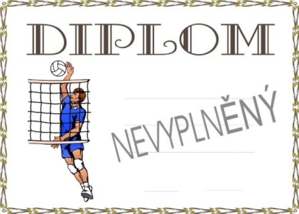 Volej. č.7. Diplom formátu A4 (250g). Objednáváte NEVYPLNĚNÉ diplomy a chcete si je vyplňovat vlastní tiskárnou - napište do textu "BEZ LINEK". Objednáváte diplomy VYPLNĚNÉ - krátké a stejné texty napište zde. Požadujete-li dlouhé nebo různorodé texty napište je prosím ve svém PC a vložte soubor (např.PDF,Corel,WORD,Exel apod.) před uzavřením objednávky jako přílohu. Do diplomu lze vložit i Vaše l...