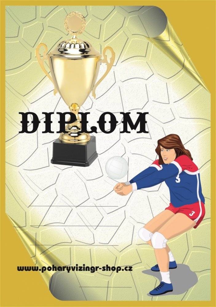 Volej.č.38. Diplom formátu A4 (250 g). Objednáváte NEVYPLNĚNÉ (BEZ TEXTU) diplomy a chcete si je vyplňovat vlastní tiskárnou - napište do textu "BEZ LINEK". Objednáváte diplomy VYPLNĚNÉ - krátké a stejné texty napište zde. Požadujete-li dlouhé nebo různorodé texty napište je prosím ve svém PC a vložte soubor (např.PDF,Corel,WORD,Exel apod.) před uzavřením objednávky jako přílohu. Do diplomu lze vložit i Vaše logo, foto apod. - pro realizaci je vhodné konzultovat e-mailem v jakém formátu požadované logo máte k dispozici.Vyplněné diplomy(četná uznání, pamětní listy apod.) Vám i zalaminujeme - vhodné domluvit na prodejně. -