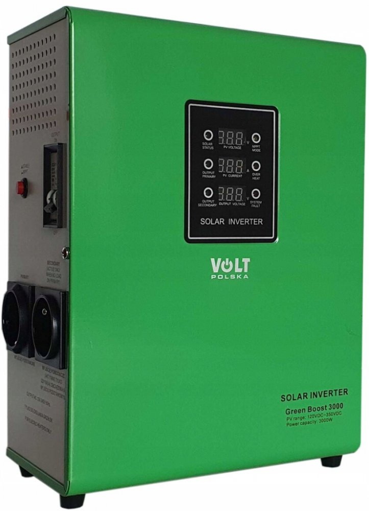 Regulátor GREEN BOOST 3000 je na vstupu vybaven proudovým jističem pro odpojení FV panelů. Výstupy regulátoru jsou určeny pro topná tělesa o napětí 230 VAC s výkonem až 3 kW. Informace o dosažitelném topném výkonu v závislosti na připojených panelech naleznete v tabulce v obrázkové galerii. Po připojení dostatečného napětí z FV panelů začne měnič napájet topné těleso připojené k výstupu č.1. Pokud je toto topné těleso odpojeno, např. externím bimetalovým termostatem začne měnič napájet spotřebič na výstupu č.2.
