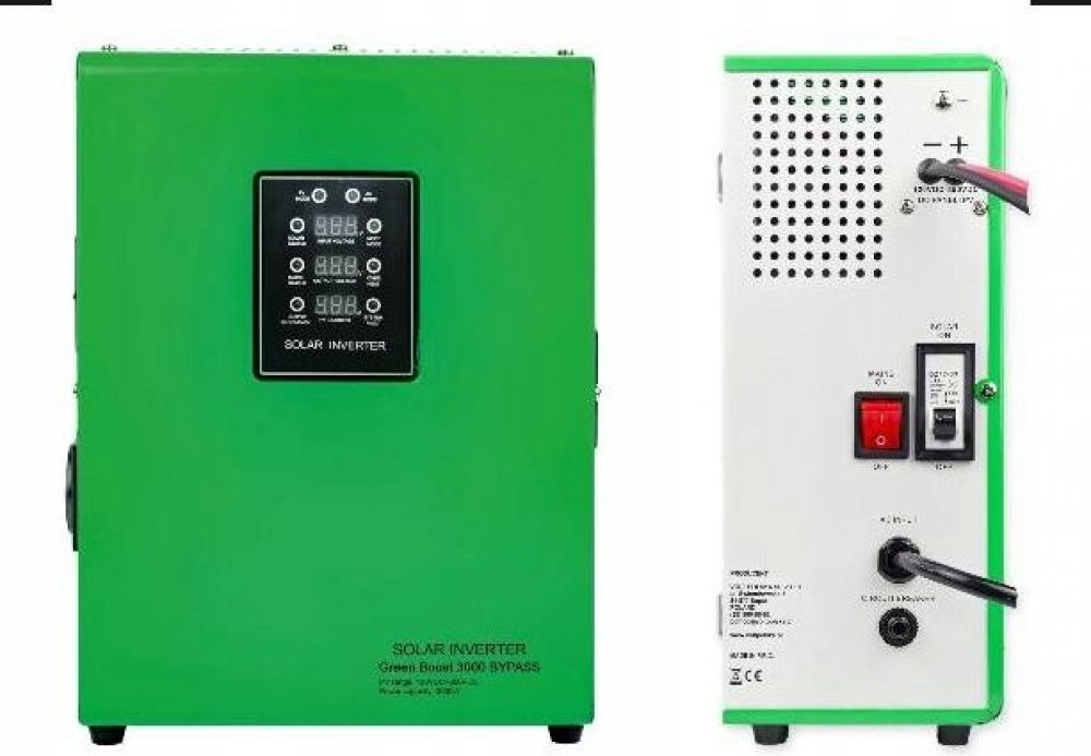 Solární konvertor VOLT GREEN BOOST MPPT 3000 BAYPASS je pokročilé zařízení pro přímé zásobování topných systémů energií z fotovoltaických panelů. Díky funkci MPPT zajišťuje maximální energetickou účinnost, zatímco systém BAYPASS umožňuje automatické přepnutí do elektrické sítě v případě nedostatečné produkce energie. Perfektní řešení pro napájení kotlů, topidel, elektrických rohoží a podlahového vytápění.VOLT GREEN BOOST MPPT 3000 BAYPASS je moderní solární konvertor, který přeměňuje stejnosměrný proud generovaný fotovoltaickými panely na střídavý proud, umožňující přímé napájení topných zařízení. Systém MPPT (Maximum Power Point Tracking) optimalizuje provoz instalace a maximalizuje účinnost přeměny energie.Díky vestavěné funkci BAYPASS se konvertor automaticky přepne na napájení z elektrické sítě v případě nedostatku energie dodávané FV panely. To zajišťuje nepřetržitý provoz vytápění i ve dnech s nízkým slunečním zářením.Pro správnou funkci zařízení stačí připojit 4 až 9 fotovoltaických panelů o výkonu 250W až 400W každý. Panely lze konfigurovat jak sériově , tak sériově paralelně , čímž se instalace přizpůsobí podmínkám uživatele.Solární invertor VOLT GREEN BOOST MPPT 3000 BAYPASS je ideální pro napájení:Elektrické kotleElektrické ohřívačeElektrické rohožeRadiátoryPodlahové topeníZařízení díky své pevné konstrukci a četným ochranám (přetížení, zkrat, tepelné) zajišťuje dlouhodobý a bezporuchový provoz. Aktivní chlazení a zvuková a vizuální varování dále zvyšují bezpečnost uživatele.Duální výstupní zásuvka - Inteligentní správa napájeníPřevodník je vybaven dvěma výstupními zásuvkami GB 3000 , které umožňují připojení dvou topných zařízení současně.První zásuvka (PRIMARY) slouží hlavnímu zařízení a má vždy prioritu napájení.Druhá zásuvka (SECONDARY) se aktivuje automaticky, když zařízení připojené k první zásuvce přestane spotřebovávat energii. Pokud se znovu objeví zátěž na zásuvce PRIMARY, napájení do zásuvky SECONDARY se přeruší.V režimu MPPT se výstupní napětí může pohybovat od 120V do 245V AC , v závislosti na výkonu získaném z FV panelů.V režimu STABLE je výstupní napětí 230 V AC s dostatečnou FV energií.