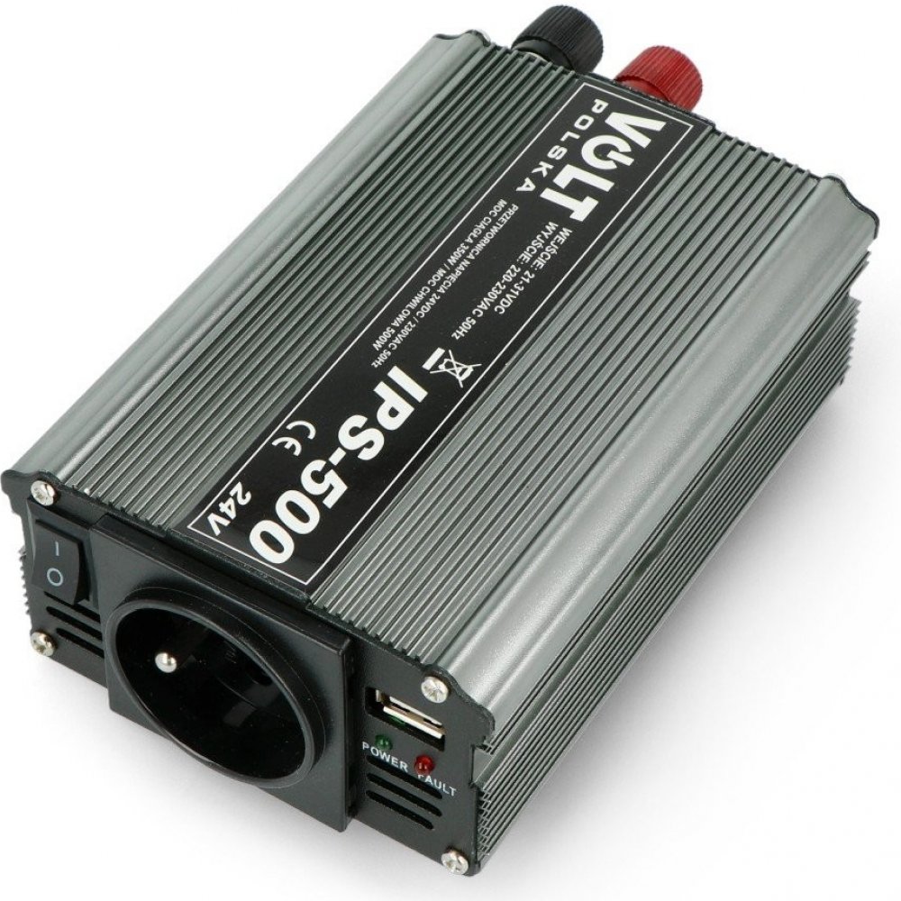 Měnič napětí VOLT IPS 500 slouží k napájení elektrických zařízení vyžadujících střídavé napětí 230V z baterií a autoinstalací stejnosměrným napětím 24V. Je ideální pro vozidla a místa, kde není možnost přímého připojení k elektrické síti. Převodník typu IPS produkuje tzv. modifikovaná sinusovka, obdélníkové střídavé napětí. Díky tomu dokáže napájet zařízení jako jsou notebooky, nabíječky atd.