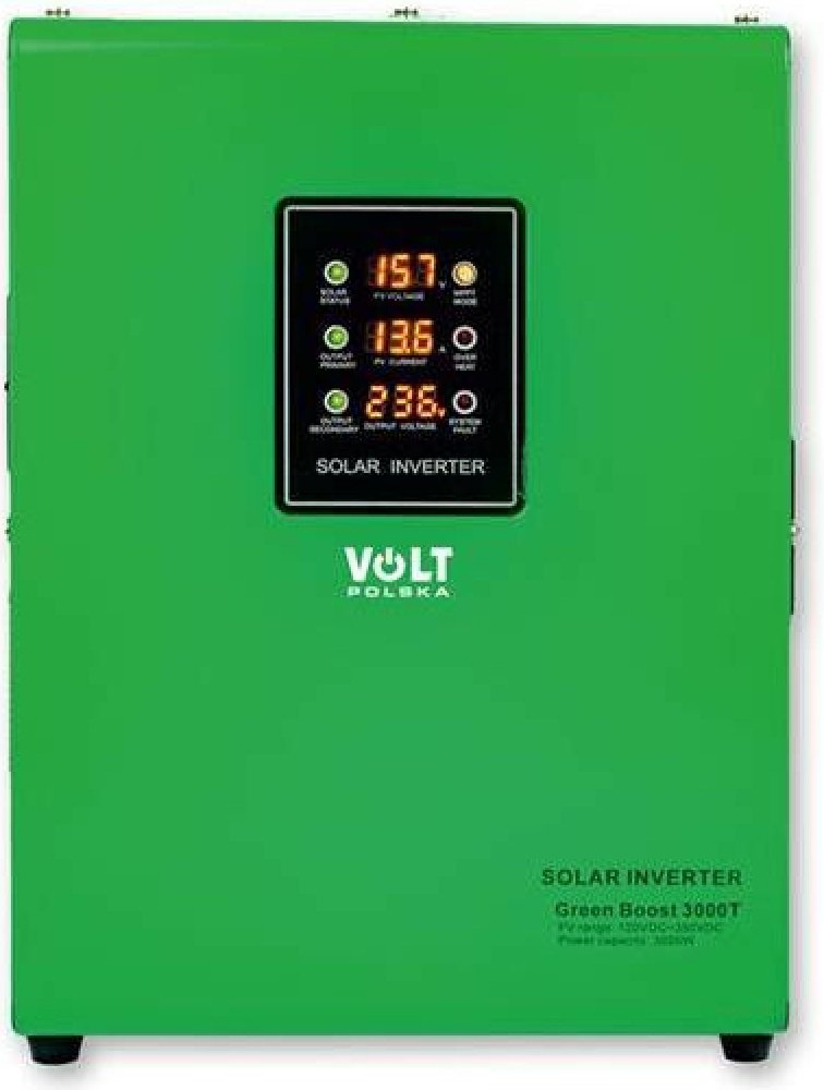 Solární konvertor pro ohřev vody, kotel GREEN BOOST MPPT-3000T slouží k napájení topných zařízení přímo ze solárních FV panelů. Systém je velmi jednoduchý a funkční. Je potřeba 4 až 9 klasických FV panelů (250W - 400W), které budou zapojeny do série a jejich celkové napětí bude v rozmezí 120 V až 350 V. Na rozdíl od standardního modelu je toto zařízení vybaveno svorkovnicí místo klasických zásuvek...