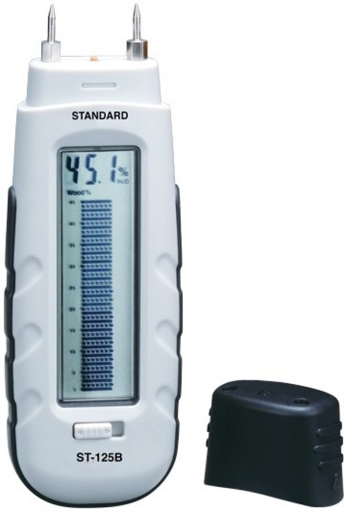 Odolný a přesný měřící přístroj k určení vlhkosti ve dřevě a ve stavebních materiálech, např. v omítce nebo nátěrech. Vysokou přesnost zajišťují dva rozsahy měření, jeden pro dřevo a druhý pro stavební materiály. Přímé zobrazení a grafické znázornění na stupnici ulehčuje odečtení naměřených hodnot.