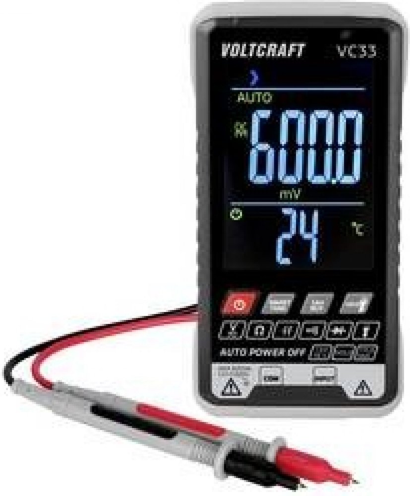 Multimetr Voltcraft SmartDMM VC33 je použitelný v rozsahu měření CAT III 600V a nabízí řadu funkcí, od měření AC/DC napětí přes měření odporu a kapacity až po test diod. Mimoto je možné bezdotykové rozpoznání napětí (NCV).