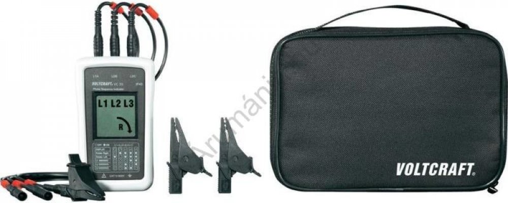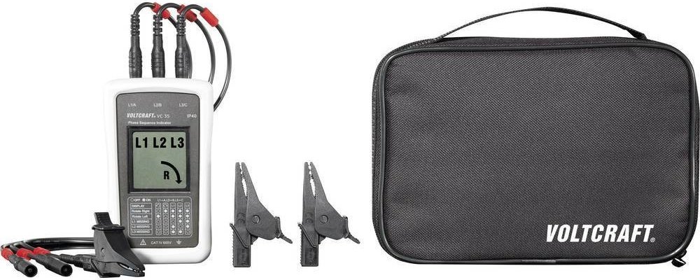 Zkušební přístroj pro automatickou kontrolu sledu fází a směru střídavého pole vnějšího vedení v průmyslových elektroinstalacích.