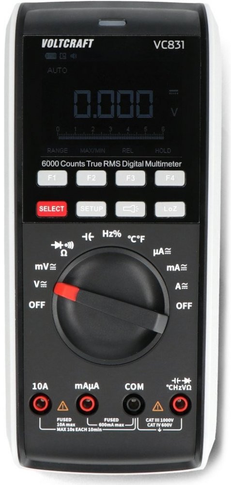 Univerzální měřič Voltcraft VC-831 je zařízení vyznačující se bohatou výbavou a vysokou mírou bezpečnosti při používání. Byl navržen pro měření v měřicích rozsazích CAT III 1000 V/CAT IV 600 V a díky použití vysoce výkonných 1000 V pojistek splňuje nejvyšší bezpečnostní standardy pro všechny typy měření. Umožňuje měřit kapacitu, odpor a frekvenci .