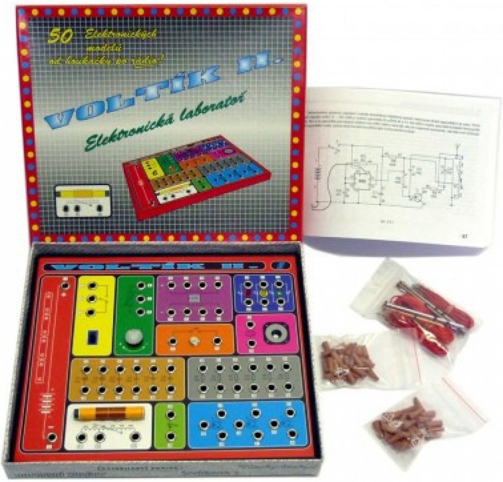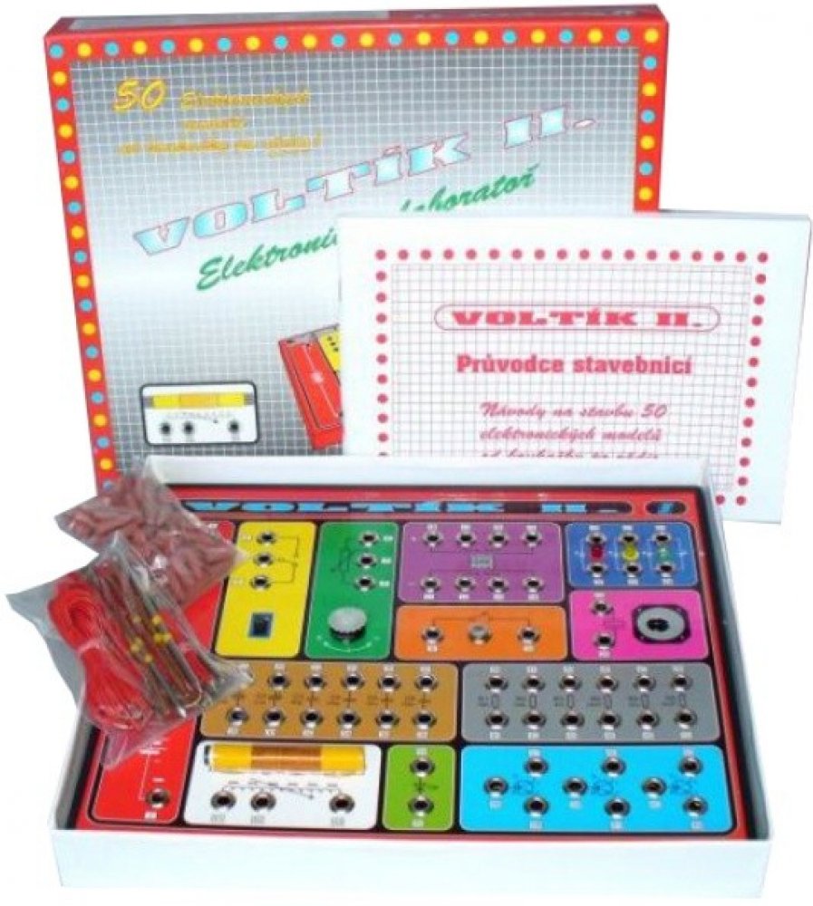 Objevte zábavnou cestu do světa elektroniky se stavebnicí Voltík II. Díky jednoduchým návodům sestavíte minimálně 50 funkčních modelů bez pájení – od semaforu a elektrického klavíru až po rádio či telegraf. Barevná světélka, tónový bzučák a snadné zapojování potěší děti i rodiče.Stavebnice Voltík II je skvělá volba pro zvídavé děti, které chtějí pochopit základy elektroniky hravou formou. Sestavov...