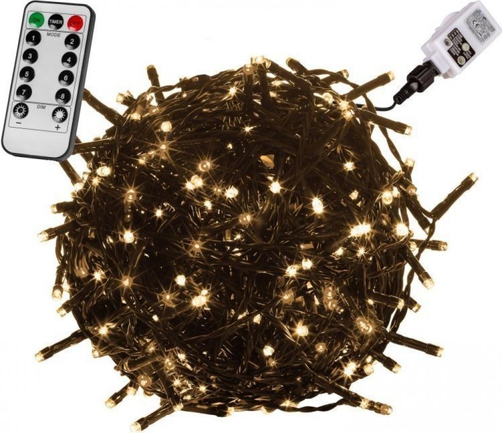 Voltronic 59744 Vánoční LED osvětlení 20 m teple bílá 200 LED + ovladač zelený kabel