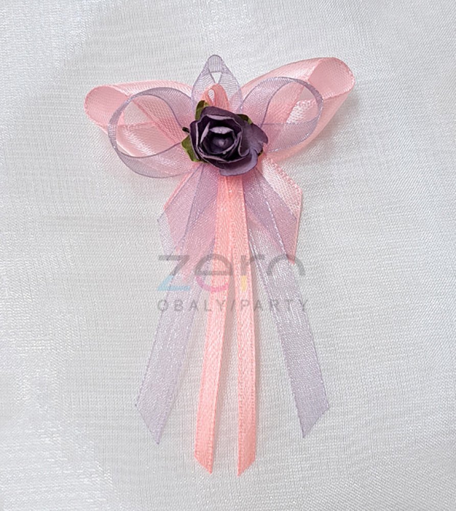 Vonička (vývazek) svatební pro svatebčany o výšce cca 8 cm. Součástí je i špendlíkBarva: růžová atlasová + růžová atlasová + fialová šifónová + fialová růžička