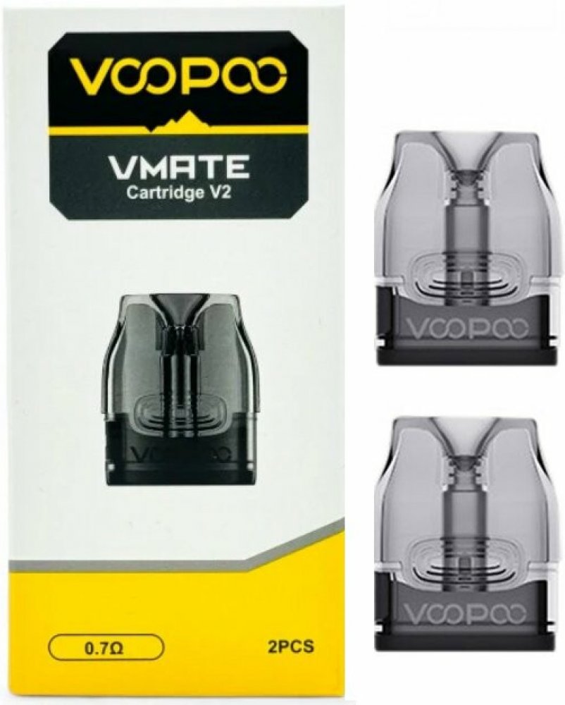 Náhradní cartridge VooPoo Vmate V2 disponuje základním objemem 3ml. Cartidge dodává jemnou chuť páry a výborně prokresluje chuť e-liquidu. Jedná se o přepracovanou verzi původní cartridge pro V.THRU Pro / Vmate, která nabídne lepší rozvržení vnitřní i vnější konstrukce, stejně jako antibakteriální náustek. Uvnitř cartridge se nachází integrovaná žhavící hlava s mesh pletivem pro skvělé podání chuti a jemnou produkci páry. Odpor činí 0,7ohm, cartridge je tedy primárně určena pro vzdušnější MTL šlukování. Je kompatibilní pouze s modely elektronických cigaret ze sérií V.THRU a VMATE. Cartridge lze použít jak se standardními nikotinovými a beznikotinovými náplněmi s poměrem PG50/VG50, tak také s náplněmi s nikotinovou solí.