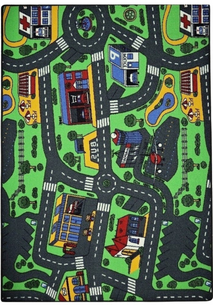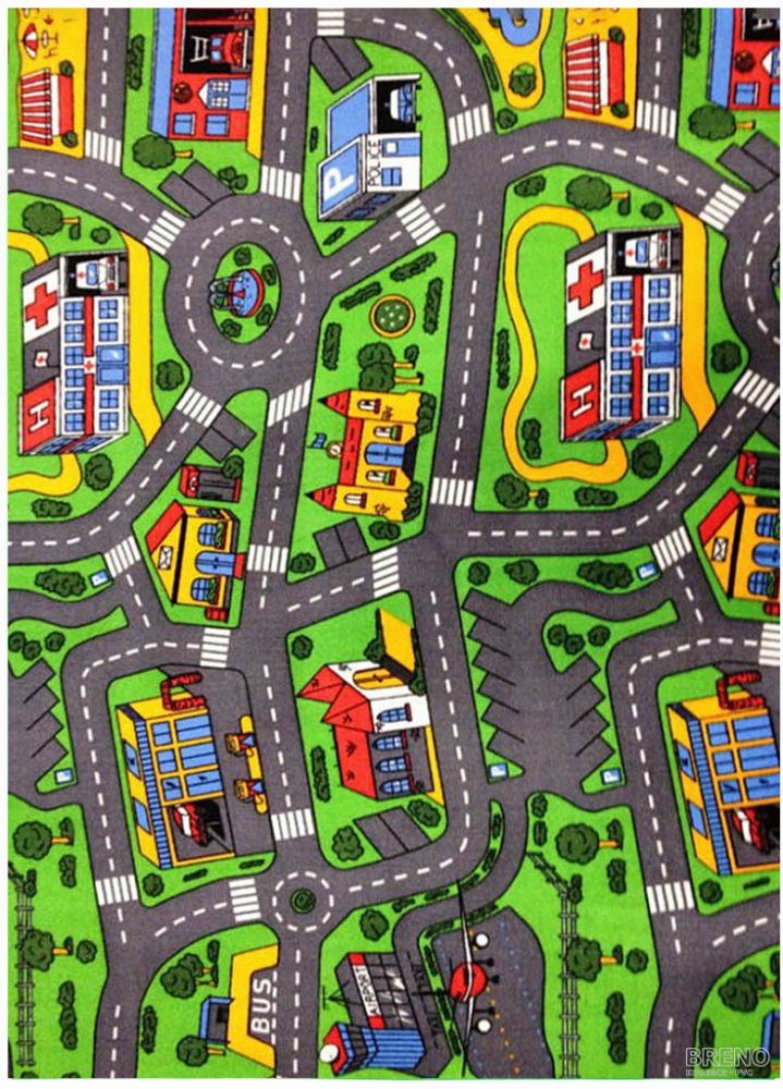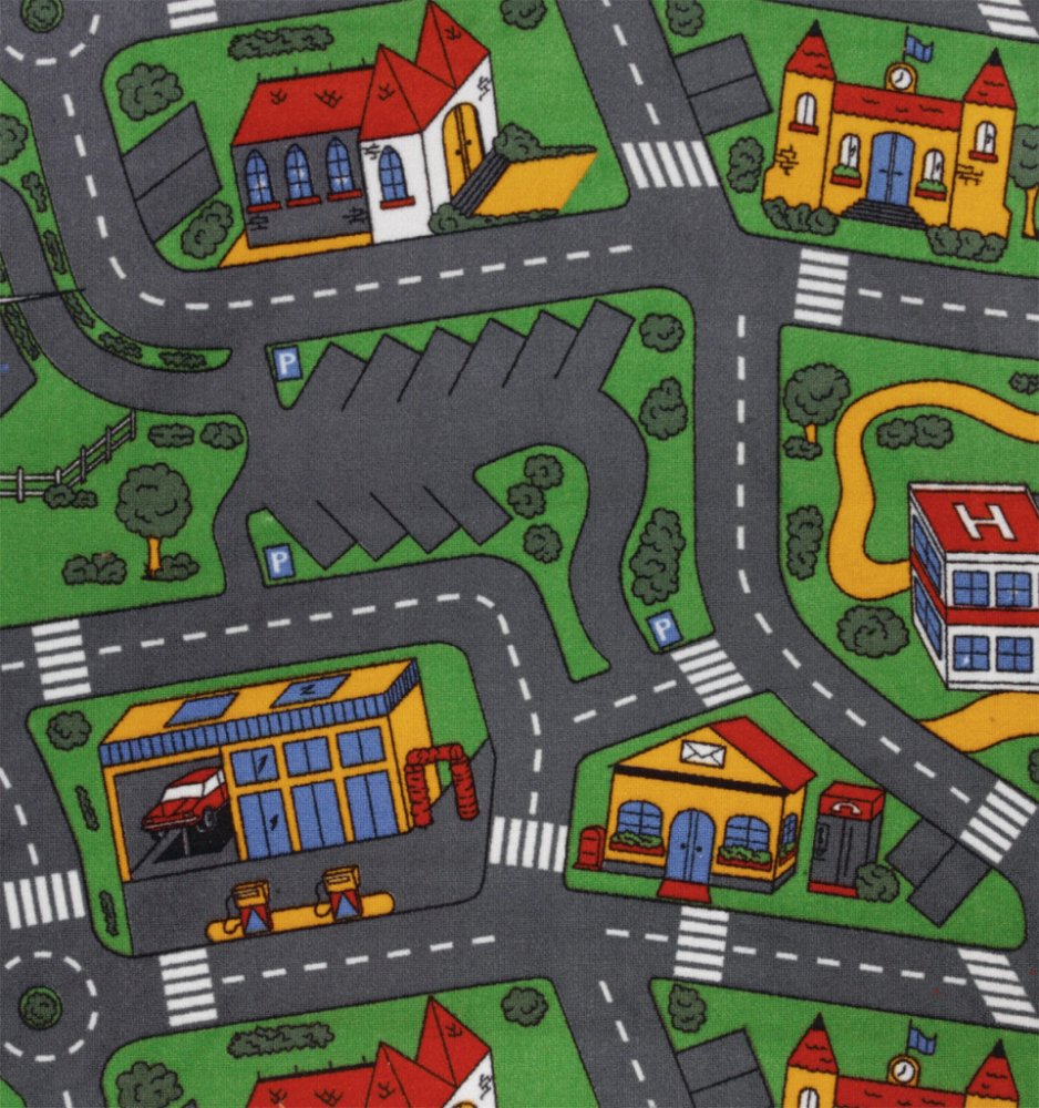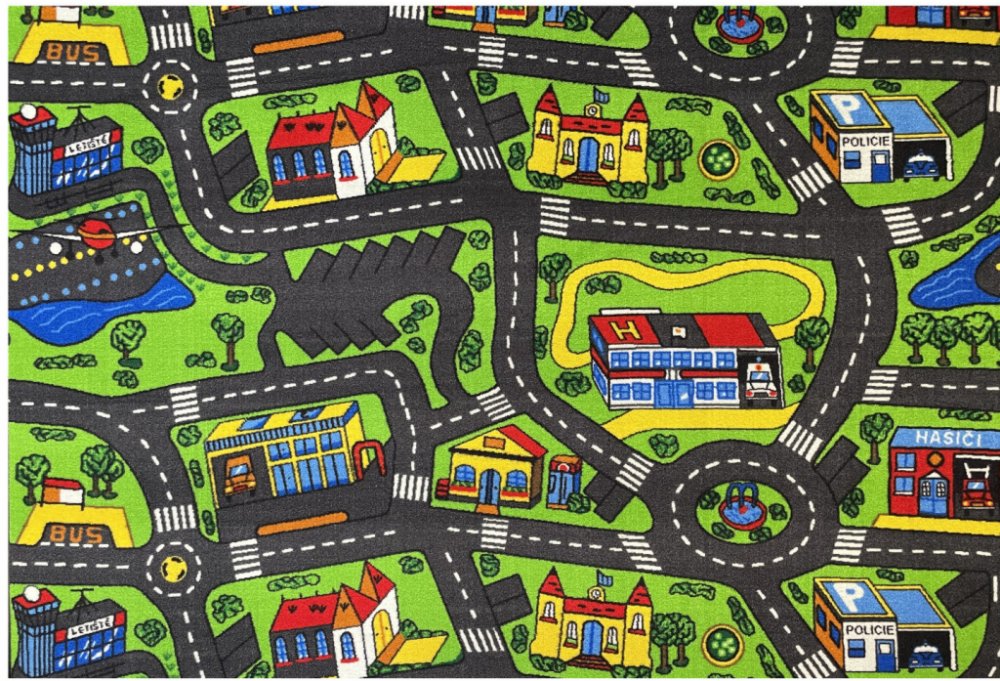 Tato kolekce dětských kusových koberců je designovaná do vzhledu měst a vesnic, je tedy doplněna řadou silnic a cest, které zabaví všechny holky i kluky.
