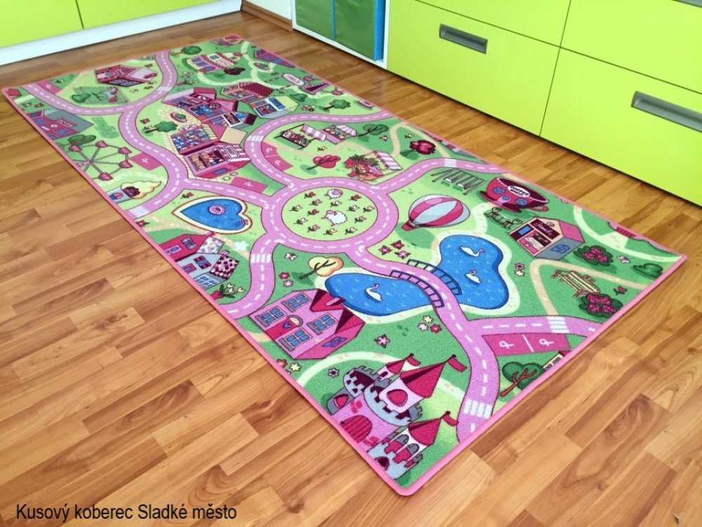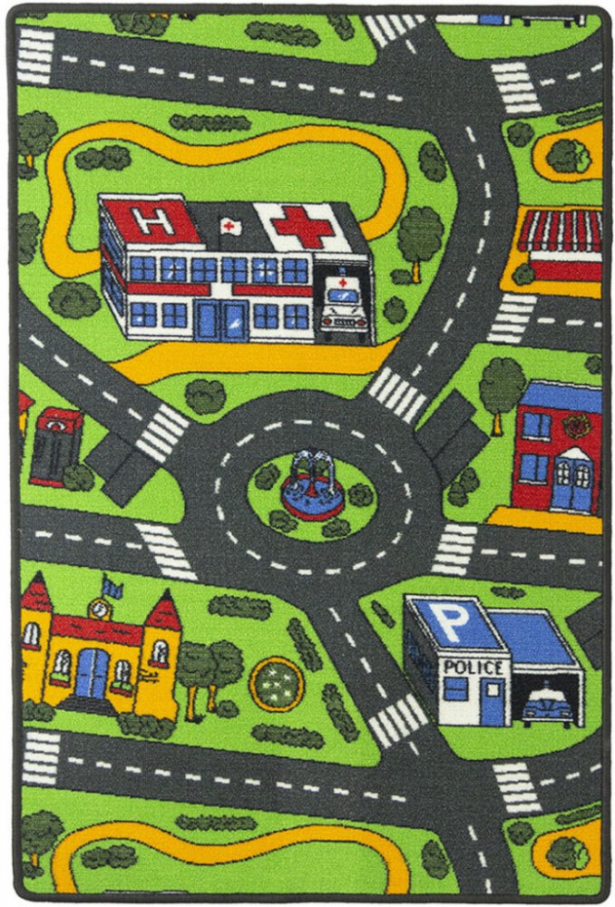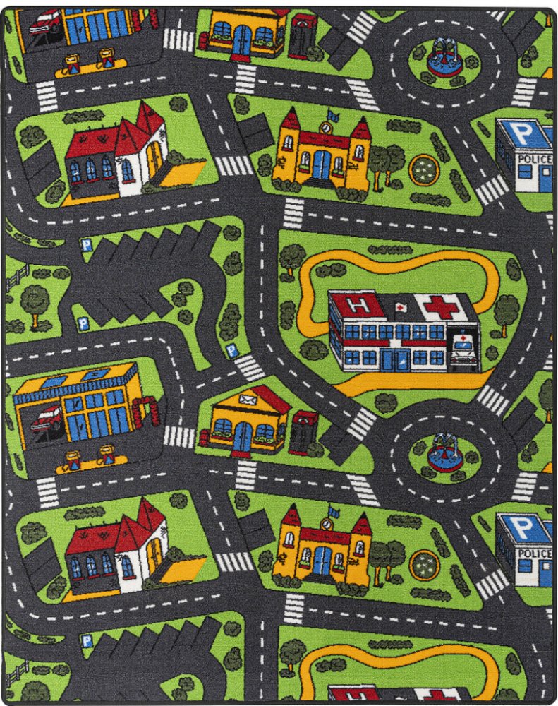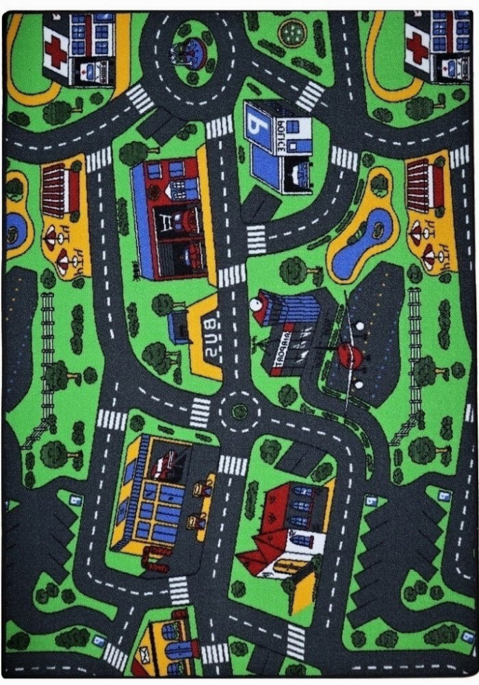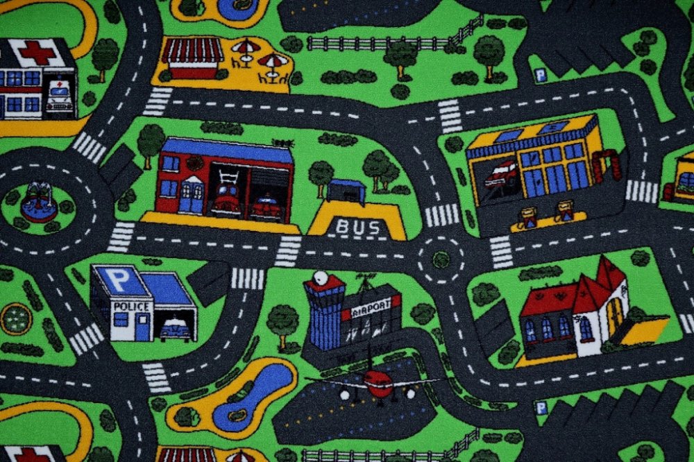 Tato kolekce dětských kusových koberců je designovaná do vzhledu měst a vesnic, je tedy doplněna řadou silnic a cest, které zabaví všechny holky i kluky.