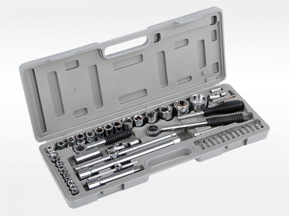 Gola sada 1/4" a 1/2". Sada celkem obsahuje 52 praktických dílů. Obsahuje: Ráčny a nástrčné klíče 1/4" a 1/2" 10-32 mm, prodlužovací a kloubové adaptéry, T-vratidla, rukojeť na bity, nástavce na bity, bity a imbusové klíče.