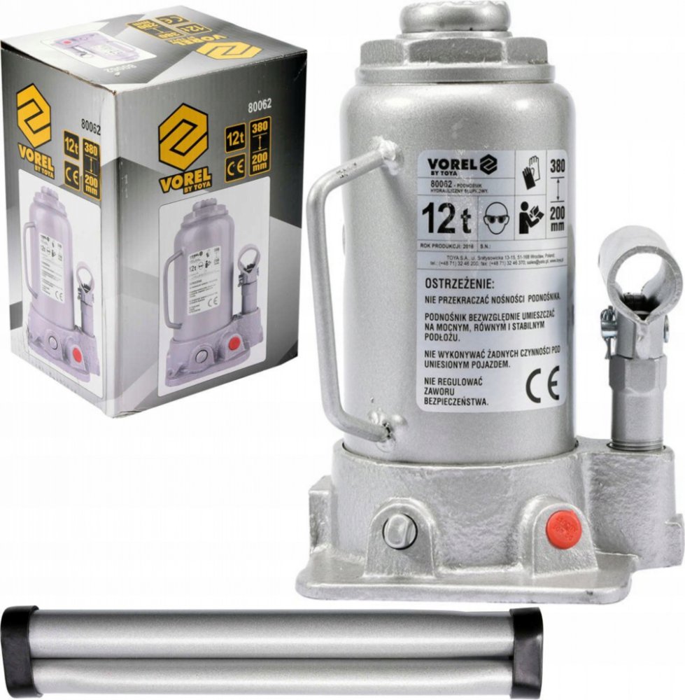 Vorel 12 t hydraulické 200 mm 380 mm lahvové (pístové) pro těžký průmysl a tahače 6.833 kg ruční (manuální)