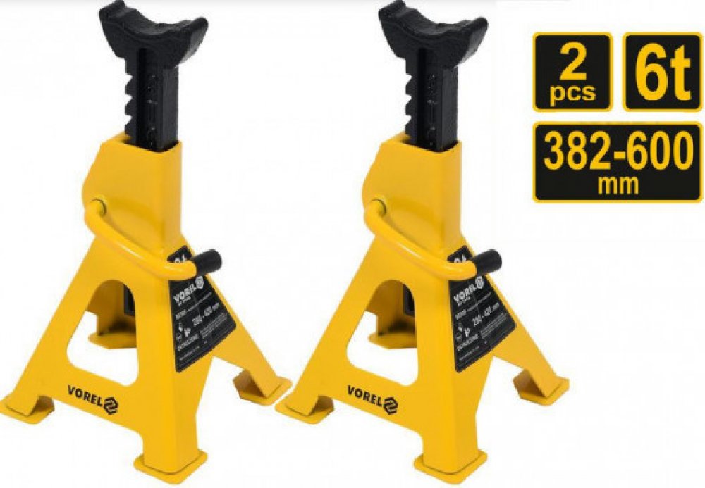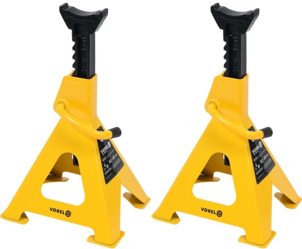 Stojan se čtyřmi nohami, nastavení výšky v rozmezí 382-600 mm, nosnost 6 tun. Zvedák s antikorozní úpravou. Ideální pro sundávání nákladu ze zvedáku. Patří k základnímu vybavení každé dílny. Tato sada VOREL se skládá ze dvou robustních kovových 6 podpěrných nohou, které jsou nezbytnou součástí vybavení každé dílny nebo garáže.Jsou ideální pro uložení podepřeného automobilu nebo pracovního dílu při rozsáhlých opravách.Každý zvedák je výškově nastavitelný v rozmezí 382-600 mm a lze jej zatížit až 6 tunami.Barva: žlutáMateriál: kovRozměry: 31 x 27 x 47 cm (d x š x v)Nastavitelná výška: 382-600 mmMaximální nosnost: 6 tOdolný proti koroziPočet nohou na stojanu: 4Rozsah dodávky: 2 x podpěrný stojan (každý s nosností 6 t) Hmotnost:4,5 kgPočet kusů v balení:2 kusů VOREL PODPĚRY PRO VOZIDLA 2 BALENÍ 6T 382 - 600 mm 80309Stojany na auta mají čtyři nohy, nastavení výšky v rozmezí 382 - 600 mm, nosnost 6 tun.Podstavce pro auta potažené antikorozní vrstvou.Ideální pro odlehčení zatížení zvedáku.Patří k základnímu vybavení každé dílny.