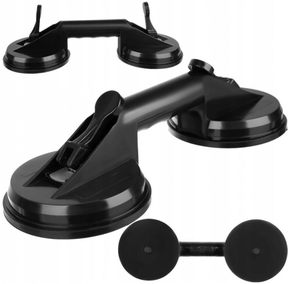 Plastový nosič skla dvojitý funguje na principu gumové přísavky. Lze použít nejen na sklo, ale i na jiné hladké povrchy.