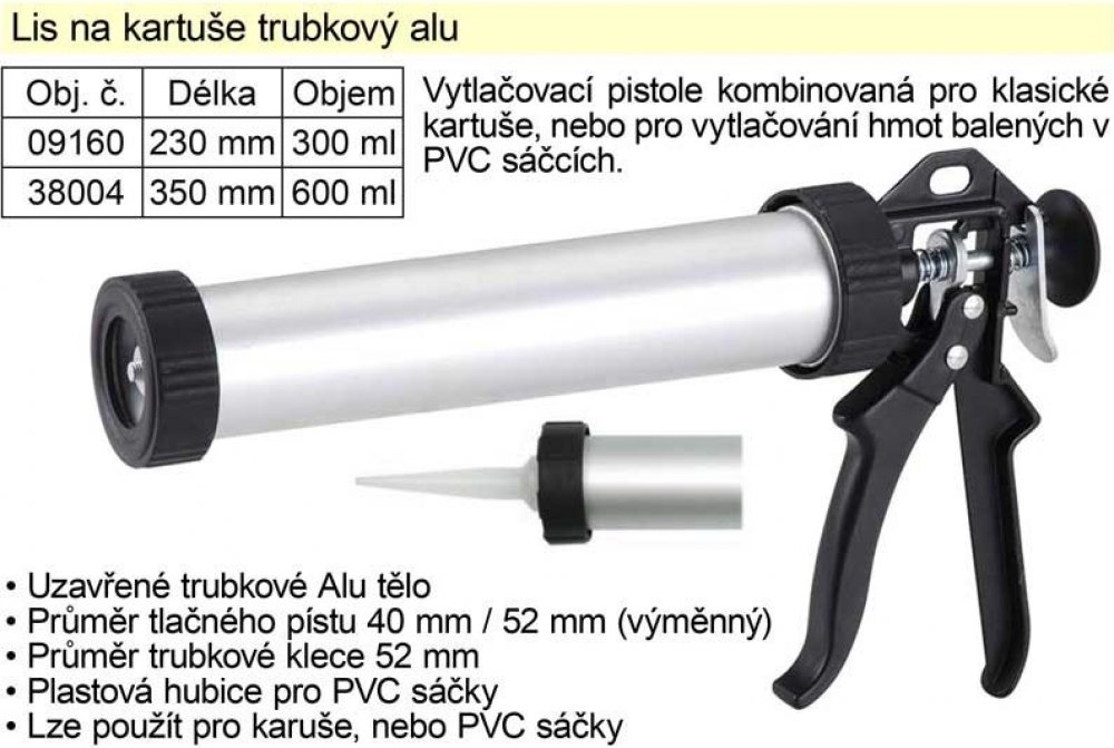 • Lze použít pro klasické kartuše 300 ml, nebo PVC sáčky