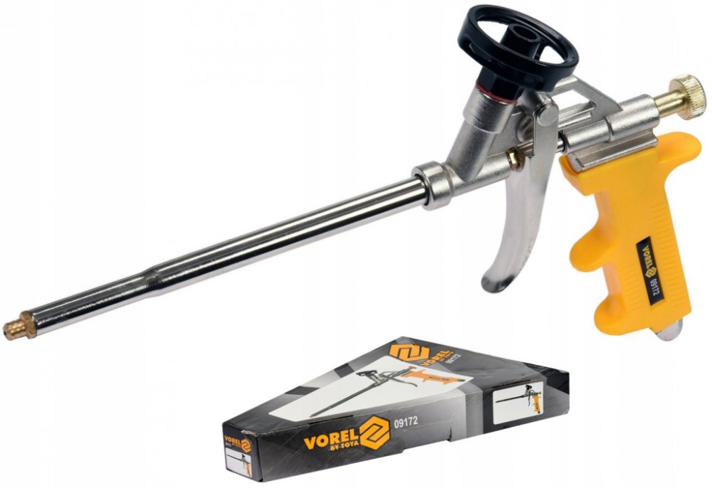 Vorel pistole na montážní pěnu kov TO-09172 Pistole na montážní pěnu Vorel TO-09172 je určena pro přesné dávkování polyuretanové montážní pěny při stavebních a instalačních pracích. Kovová konstrukce zajišťuje vyšší odolnost a pevnost nástroje.