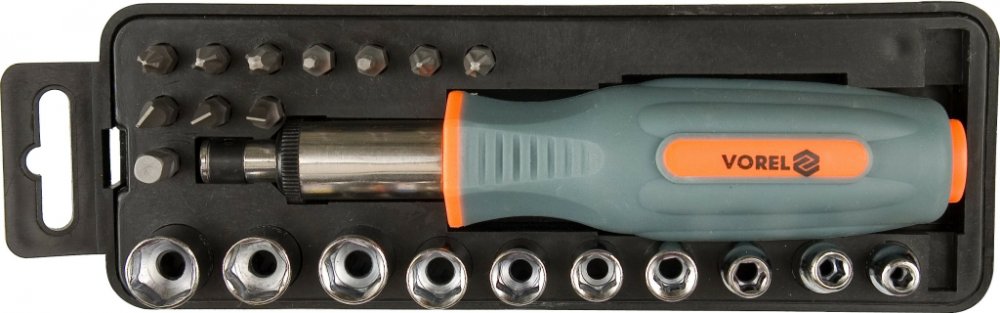 Vorel TO-60976 Šroubovák ráčnový s příslušenstvím 22 ks