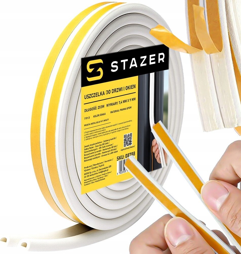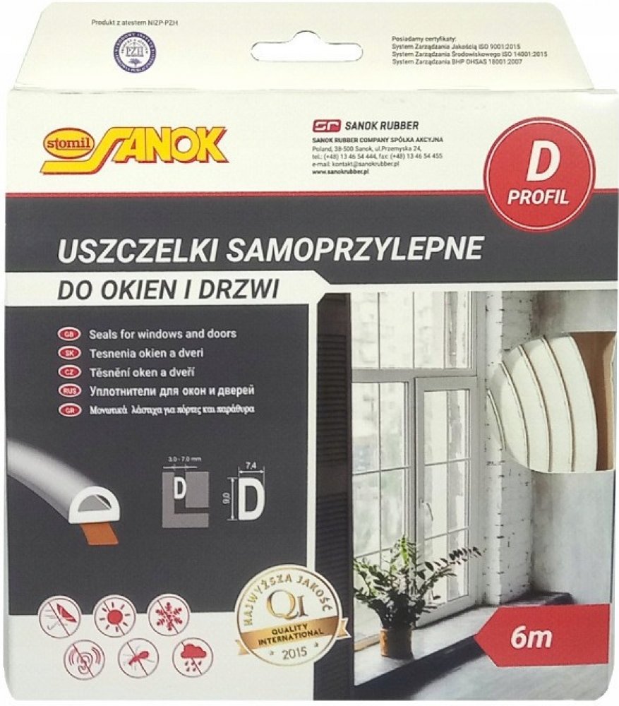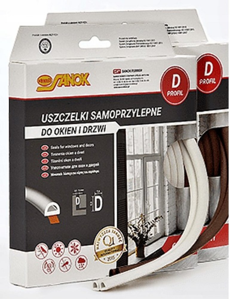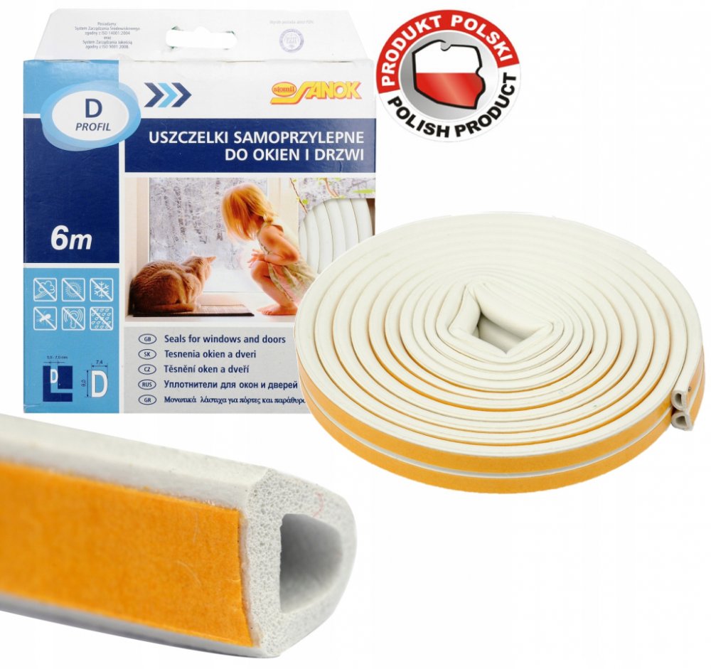 Těsnění do oken a dveří samolepící 9x7,4mm TYP D bílé 6M