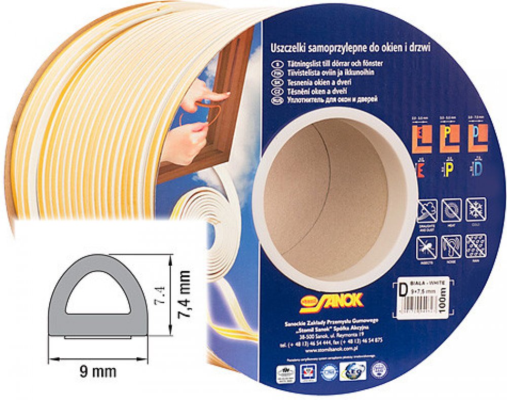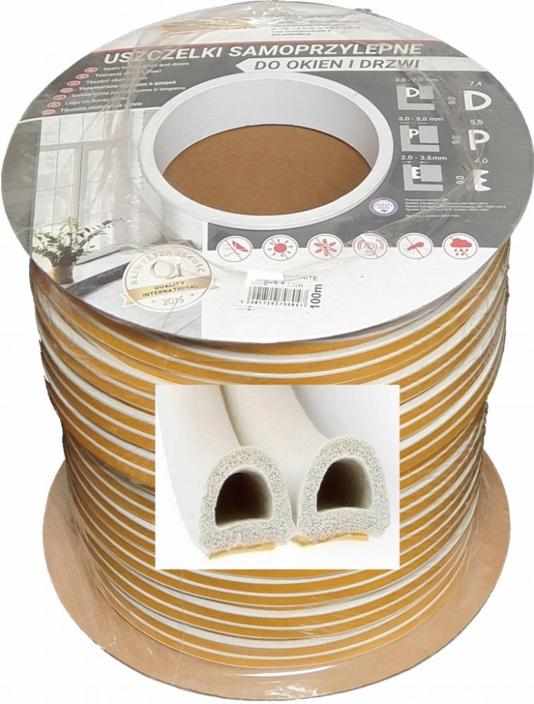 Samolepicí těsnění do oken a dveří, vyrobeno z pryže s elastomerem EPDM, která má velmi dobrou odolnost proti povětrnostním vlivům, UV záření, vlivům vzduchu i vody.
